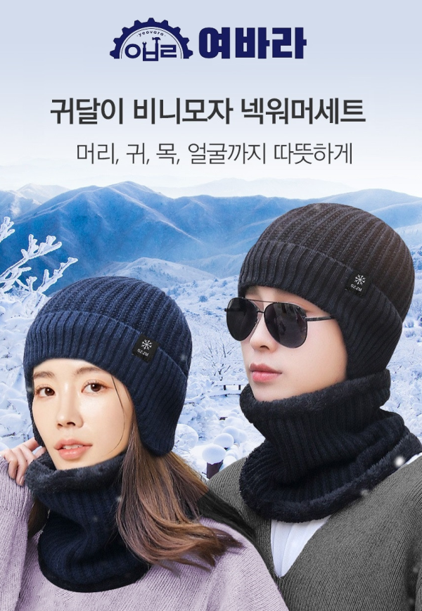 기모 방한 여바라 비니모자 귀달이 넥워머 골프 세트 방한모 남녀공용 겨울 귀마개 > 패션잡화 뷰